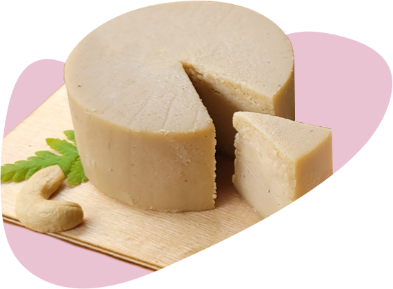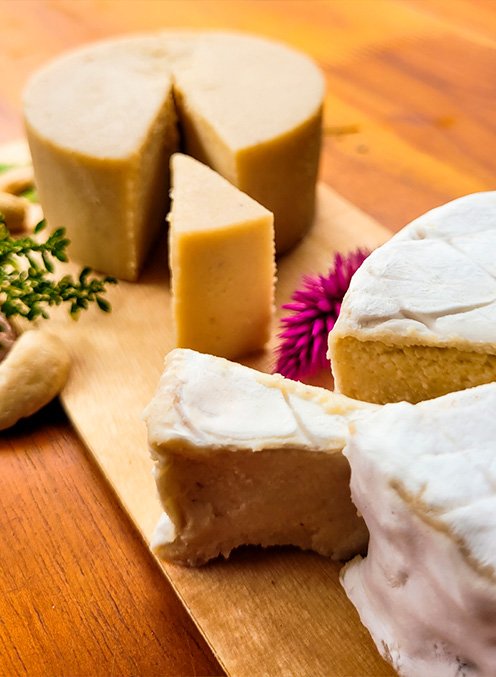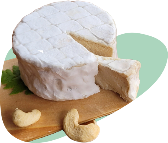 Queijo de corte à base de castanha de caju, fermentado e maturado por duas semanas. Perfeito para tábua de queijos, lanches e saladas.