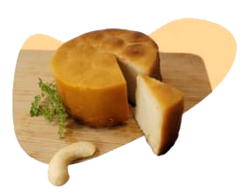 Queijo de corte à base de castanha de caju semelhante ao cura mas passa pela defumação artesanal. Perfeito para tábua de queijos, lanches e saladas.